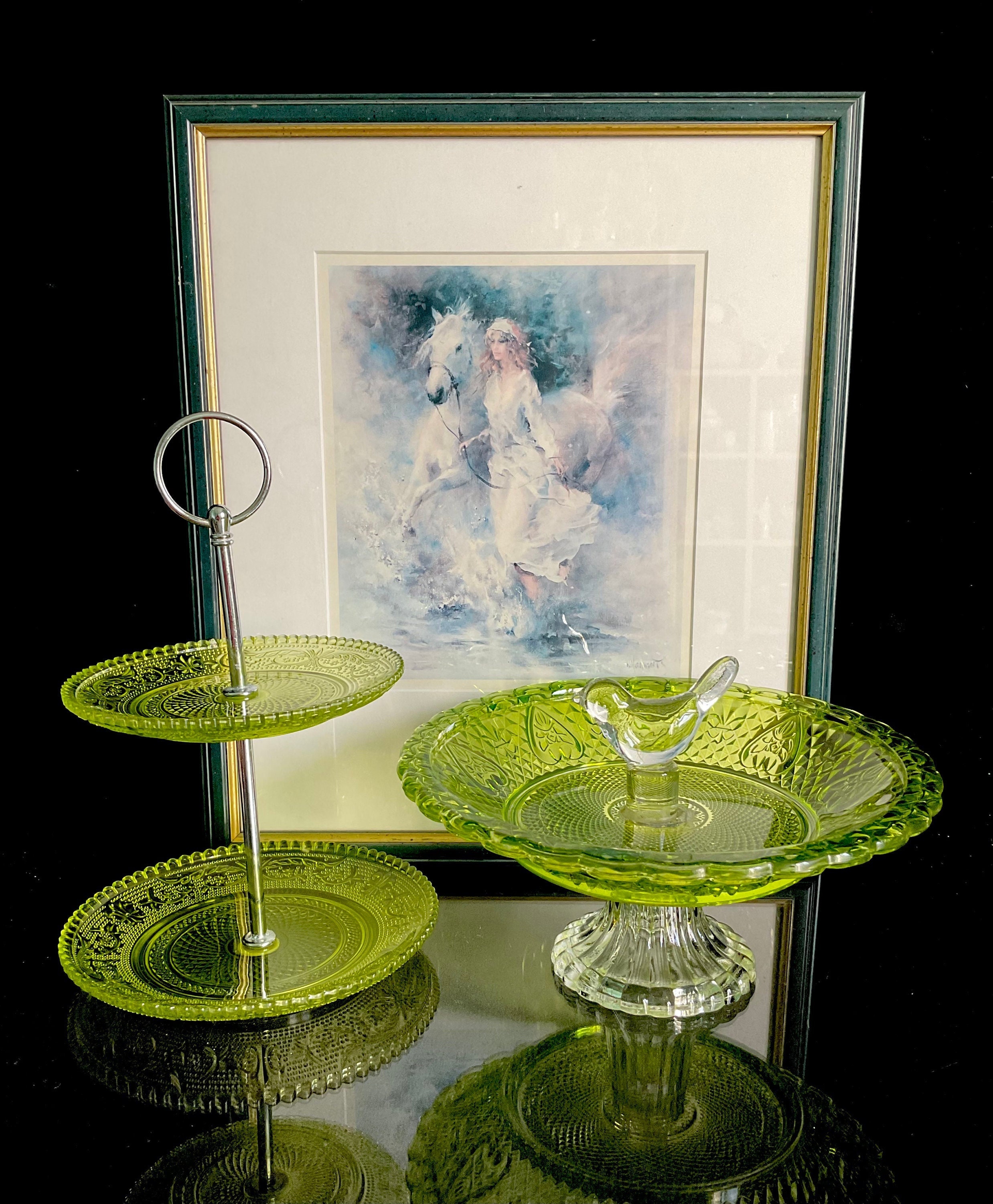 Green Glass Cake Stand Etsy Uk