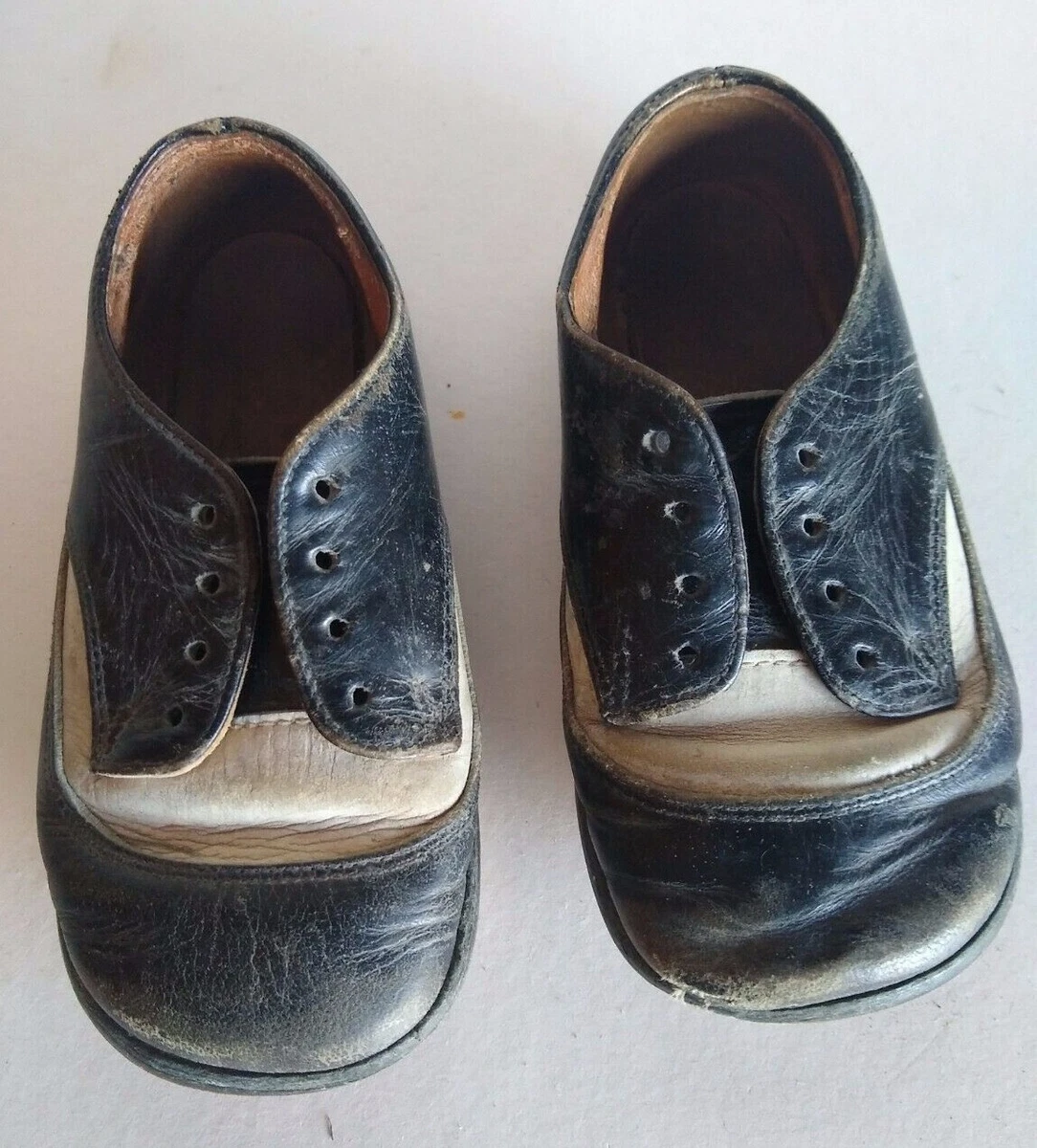 Baby Toddler Shoes Vintage Antique Black White Leather Saddle Child Costume Doll Ebay